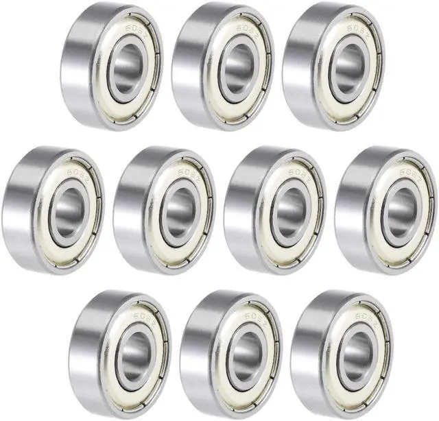 KEY_TAB Selecting Guide:Shields (Designation Suffix Z/ZZ) - High speed. Protect from dirt and debris.Sealed (Designation Suffix RS/2RS) - Made of sheet steel reinforced NBR (oil- and liquid-resistant). Lower limit speed than Shield Bearings.KEY_TAB Specification:Model: 608ZZSeal Type: Double ShieldedInner Race/Outer Race Material: Chromium Steel (GCr15)Cage Material: Stamping SteelInner Diameter (d): 8mmOuter Diameter (D): 22mmThickness (B): 7mmDynamic Load Rating (Cr): 3.3kNStatic Load Rating (Cor): 1.35kNAccuracy Class: P5 (ABEC5)Noise Level: Z2Number of Pack: 10pcs