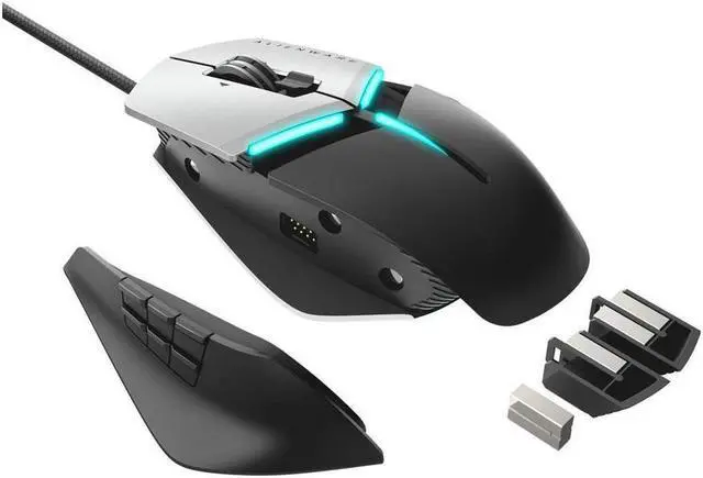 Customization comes standard With a mouse this attractive, immersion comes naturally. Experience more flexibility in form and function with up to 13 programmable buttons, onboard memory, interchangeable side grips (one with 2 buttons and another with 6), configurable weights (Four 5 grams) and adjustable 3 multi-position palm rest. AlienFX lighting effects Enhance your gaming experience with AlienFX an RGB lighting system designed to bring you closer to the worlds you play in with dynamic lighting effects tied directly to the in-game action. Durable and comfortable The Alienware Elite Gaming Mouse was built with superior materials for ultimate comfort, design and durability.