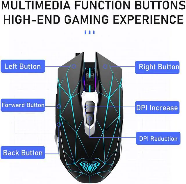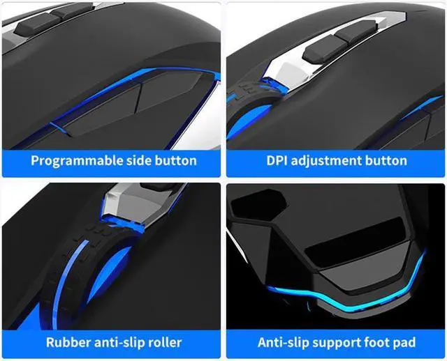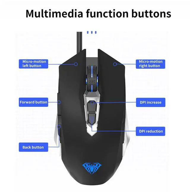 AULA S50 Gaming Mouse 4 DPI support Marco Programmable & Cool Lighting Electroplated Double Wing for computer