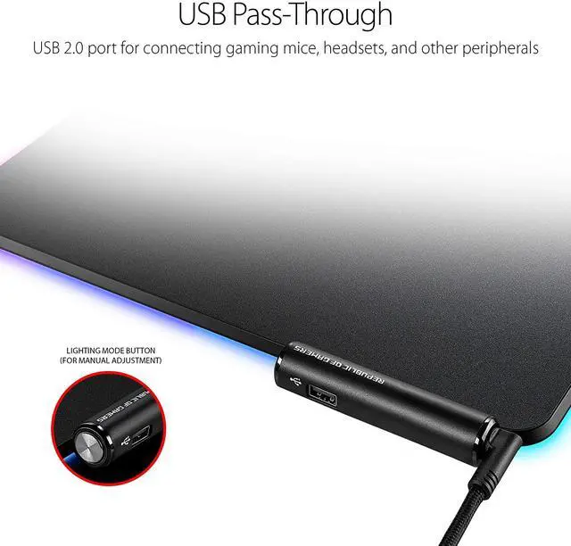 Style: Gaming Mouse Pad Gain the competitive edge with the ROG Balteus Vertical gaming mouse Pad. Optimized for endless gameplay, the hard micro-textured, low-friction gaming surface ensures smooth gliding and precise control. Convenient USB pass-through provides connectivity for gaming mice or headphones. Customize your ROG Balteus with different lighting effects via ASUS Aura Sync.