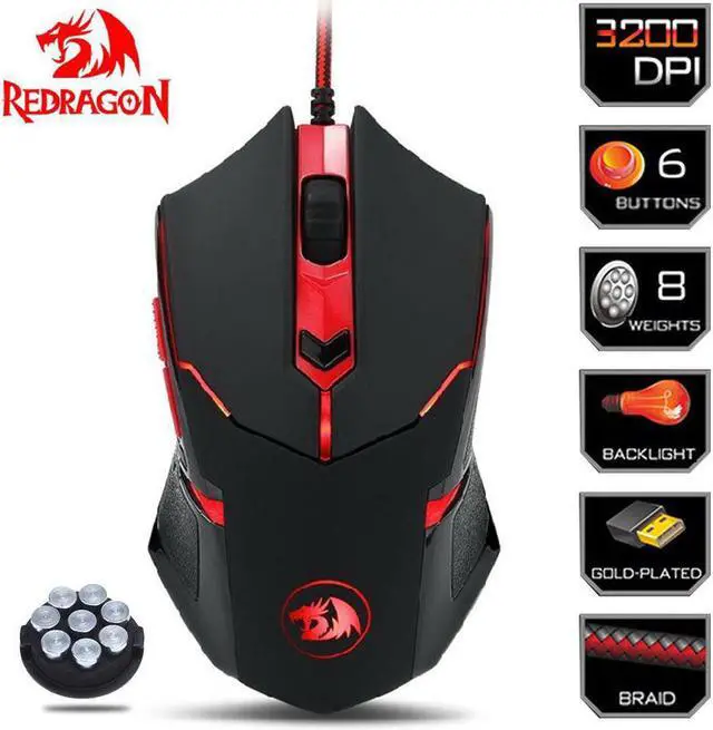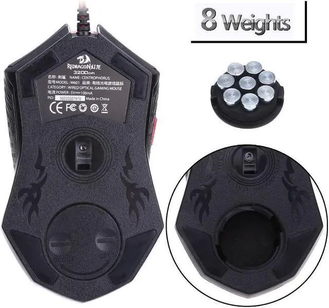 Redragon M601 CENTROPHORUS-3200 DPI Gaming Mouse for PC 6 Buttons Weight Tuning. Adjustable DPI- 1000/1600/2400/3200. Quality ABS construction and two programmable side buttons. 6 buttons, and an 8-pi