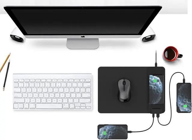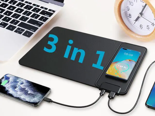 - Combined mouse pad and QI wireless charging station function into one.