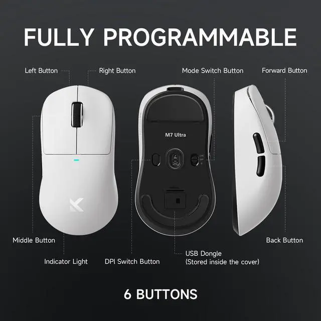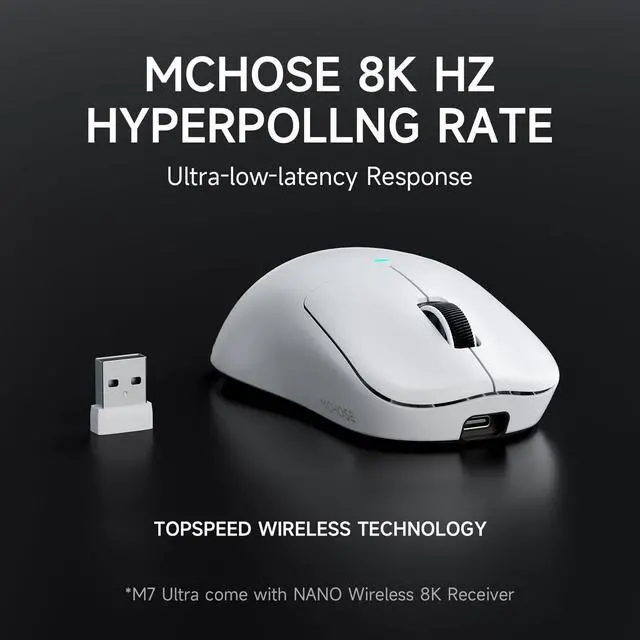 Dual 8K Polling RateThe M7 model features wired 1K and wireless 8K connectivity, while the M7 Pro includes dual-mode 8K options. This lightning-fast polling rate of just 0.125 ms drastically reduces latency, providing enhanced precision and control during competitive gameplay.