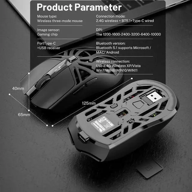 Wireless connection: USB 2.4G Wireless XP/Vista/Win7/Win8/Win10/Win11