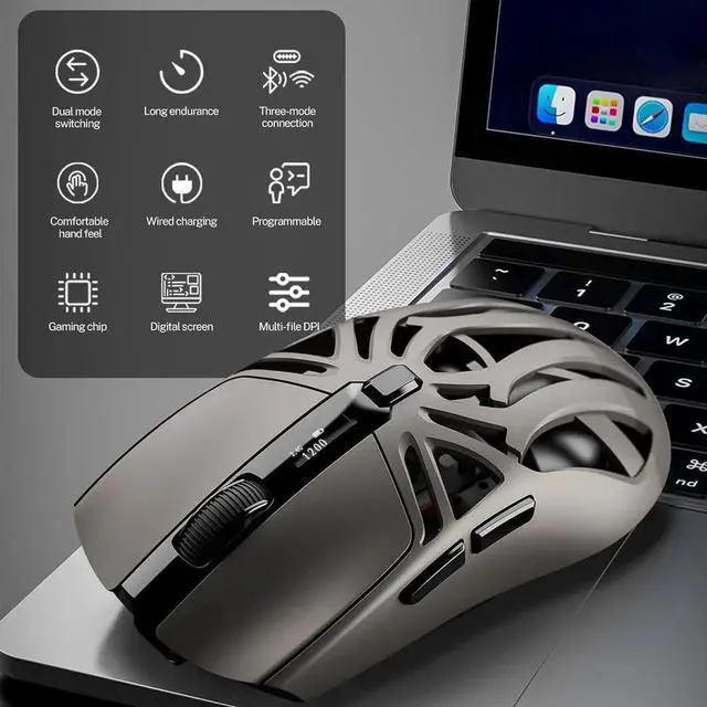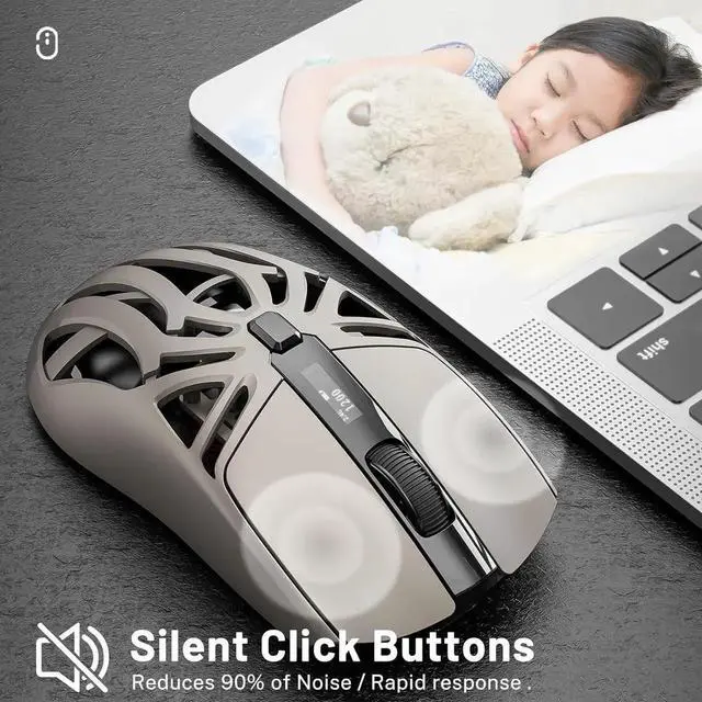 The top of the mouse is designed with a screen displaying the power level, so you can check the remaining power level at any time.