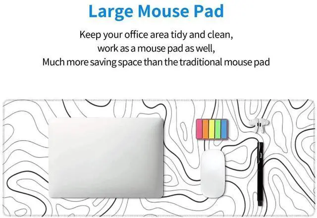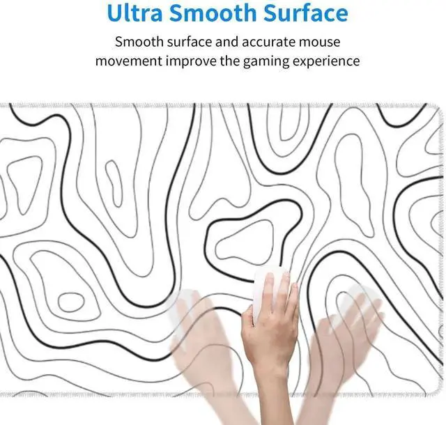 JVFYI White Mouse Pad Large XL Gaming Mouse Pad for Desk Topographic Mouse Pad Desk Pad Gaming Mouse Pad White Desk Mat Extended Black and White White Topo Mousepad White Topographic Mouse Pad Full