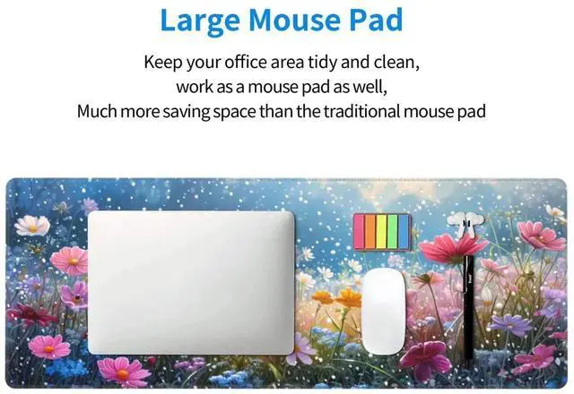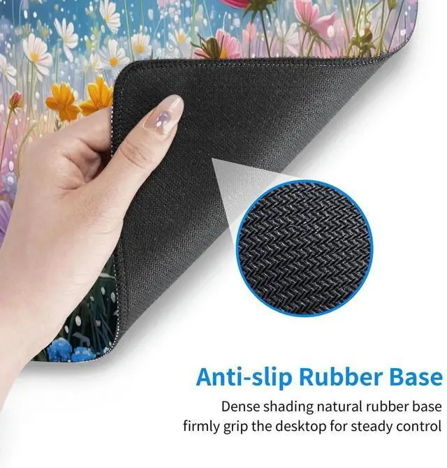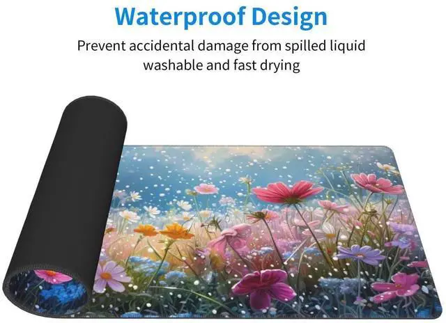SOFT AND NON-SLIP RUBBER BASE: The soft and dense non-skid nature rubber base keeps the pad firmly in place, it can effectively prevent the mouse and keyboard from sliding and moving for stable operation. Works well on all types of desks including wood, glass, leather, metal, marble desk and more. While sturdy, the entended desk pad is flexible enough to be rolled up for easy transport, to move around so you can work or game wherever you want.