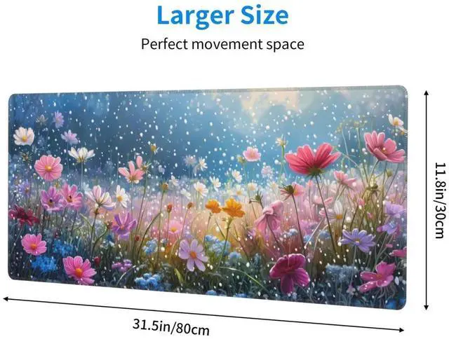 JVFYI Gaming Mouse Pad Desk Pad,Extended Big Mouse Pad,31.5x11.8 Inch Long Computer Keyboard Mouse Mat Mousepad with 3mm Non-Slip Base and Stitched Edge for Gaming and Office (Flowering shrubs)