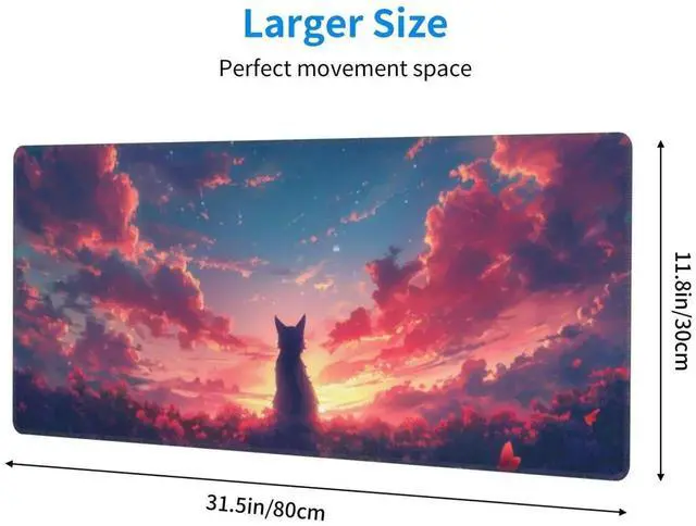 JVFYI Gaming Mouse Pad Desk Pad,Extended Big Mouse Pad,31.5x11.8 Inch Long Computer Keyboard Mouse Mat Mousepad with 3mm Non-Slip Base and Stitched Edge for Gaming and Office (Sunset Cat)