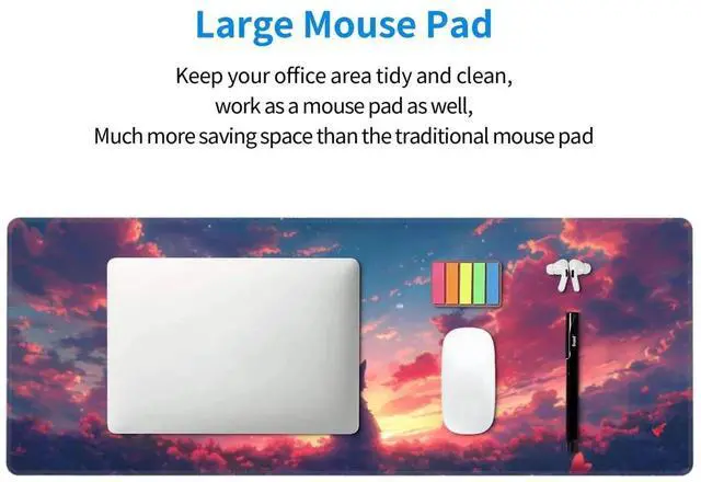 SOFT AND NON-SLIP RUBBER BASE: The soft and dense non-skid nature rubber base keeps the pad firmly in place, it can effectively prevent the mouse and keyboard from sliding and moving for stable operation. Works well on all types of desks including wood, glass, leather, metal, marble desk and more. While sturdy, the entended desk pad is flexible enough to be rolled up for easy transport, to move around so you can work or game wherever you want.