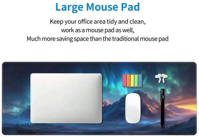 SOFT AND NON-SLIP RUBBER BASE: The soft and dense non-skid nature rubber base keeps the pad firmly in place, it can effectively prevent the mouse and keyboard from sliding and moving for stable operation. Works well on all types of desks including wood, glass, leather, metal, marble desk and more. While sturdy, the entended desk pad is flexible enough to be rolled up for easy transport, to move around so you can work or game wherever you want.