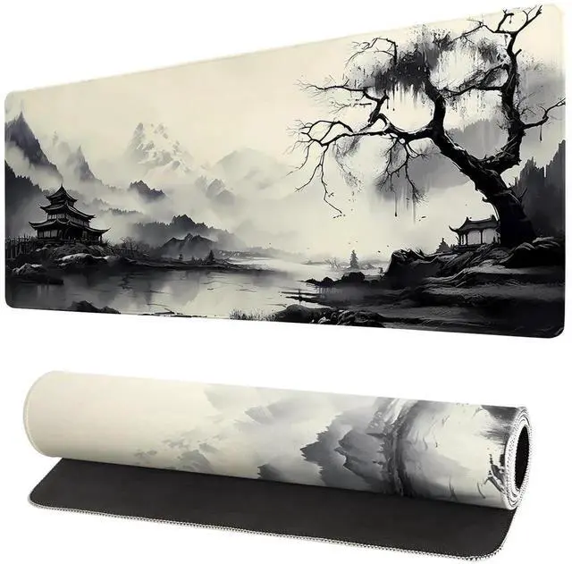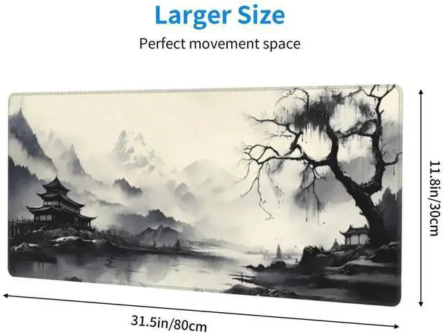JVFYI Gaming Mouse Pad Desk Pad,Extended Big Mouse Pad,31.5x11.8 Inch Long Computer Keyboard Mouse Mat Mousepad with 3mm Non-Slip Base and Stitched Edge for Gaming and Office (wash painting2)