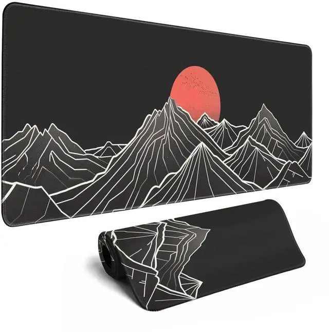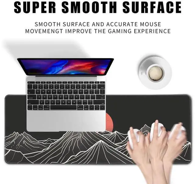 JVFYI Minimalist Black Gaming Mouse Pad XL XL Large Mouse Pad Mat Long Extended Mousepad Desk Pad Non-Slip Rubber Mice Pads Stitched Edges Thin Pad (31.5x11.8 Inch)-Mountains