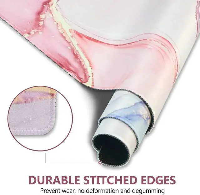 JVFYI Extended Gaming Mouse Pad, XL Large Keyboard Mouse Mat Desk Pad with Stitched Edges, Durable Non-Slip Base Mousepad for Home Office Work, 35x15.7inch, Pink Purple Marble
