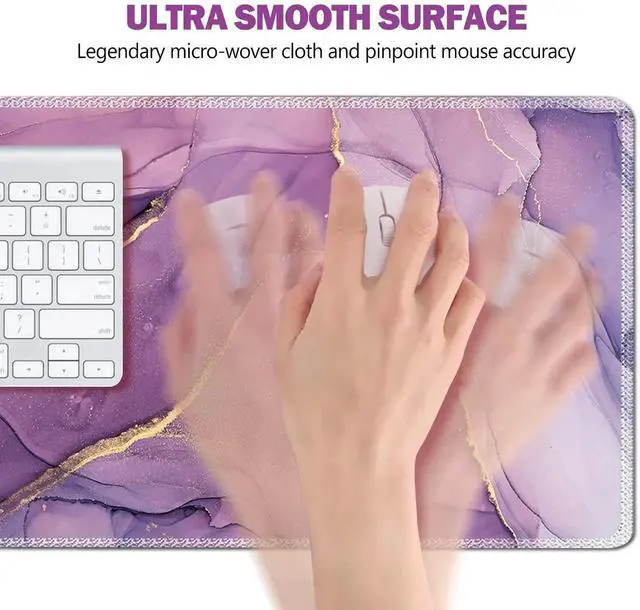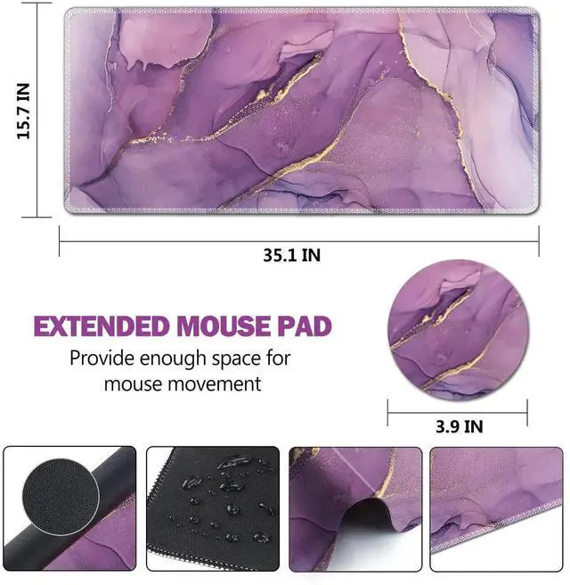 JVFYI Large Gaming Mouse Pad, XXL Keyboard Mouse Mat Extended Desk Pad with Stitched Edges, Durable Non-Slip Base Mousepad for Home Office, 35x15.7inch, Purple Marble