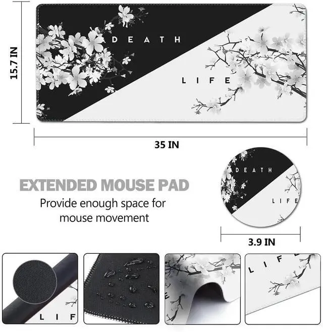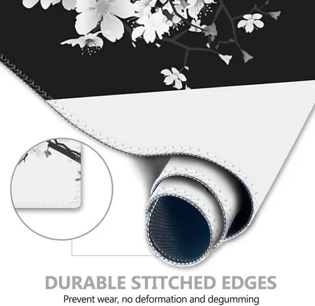 JVFYI Extended Gaming Mouse Pad, XL Large Keyboard Mouse Mat Desk Pad with Stitched Edges, Durable Non-Slip Base Mousepad for Home Office, 35x15.7inch, Black White Cherry Blossom
