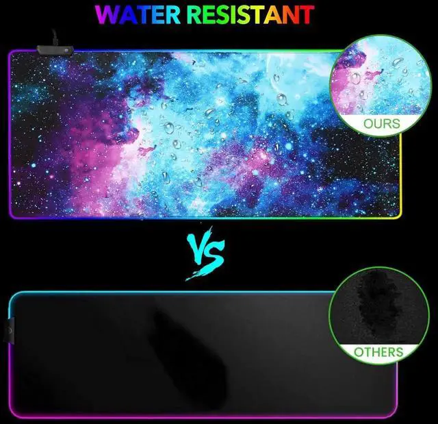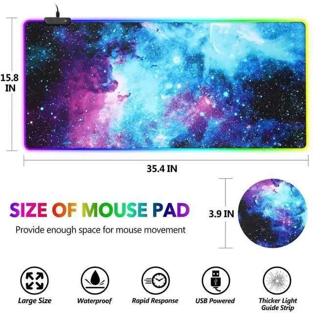 JVFYI RGB Gaming Mouse Pad Extended, Large Led Mousepads Non-Slip Rubber Base with 14 Lighting Modes, Computer Keyboard Mat Soft Desk pad Waterproof 35.4 x 15.8 inches, Galaxy Nebula Universe