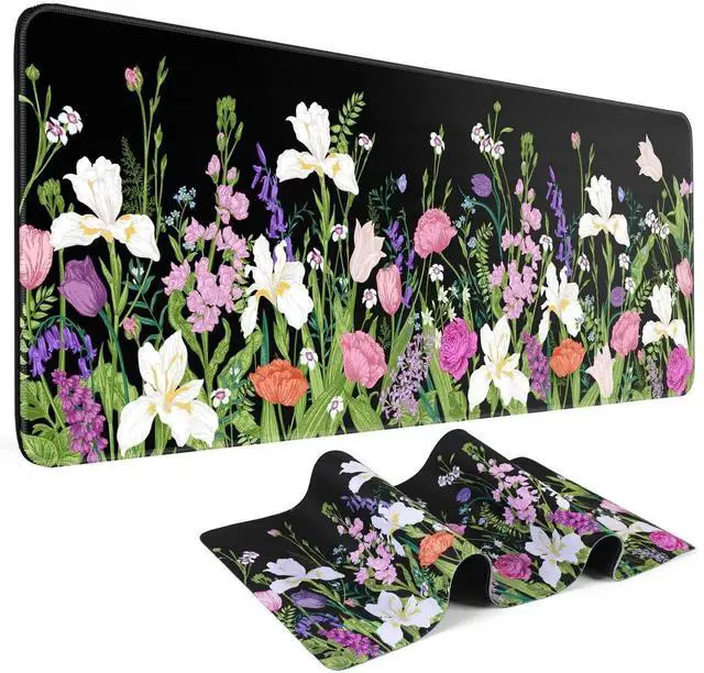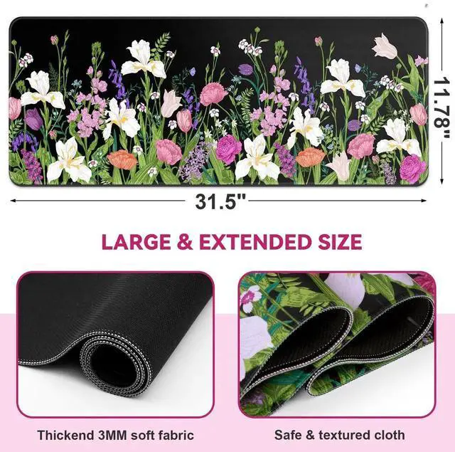 JVFYI Large Gaming Mouse Pad Keyboard Pad 31.5 x 11.8 in Gaming Pad Black Mouse Pad with Anti-Slip Rubber Base, Extended Mouse Mat XL Mouse Pad Large Mouse Mat(Flower)