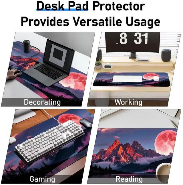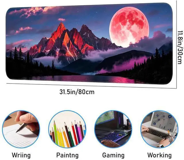 The mouse pad measures 31.5x11.8 inches, covering most of the desktop and can accommodate a laptop, keyboard, and mouse at the same time, ensuring that users can move the device freely while gaming or working.