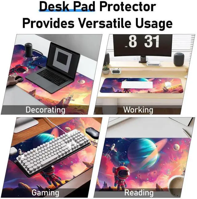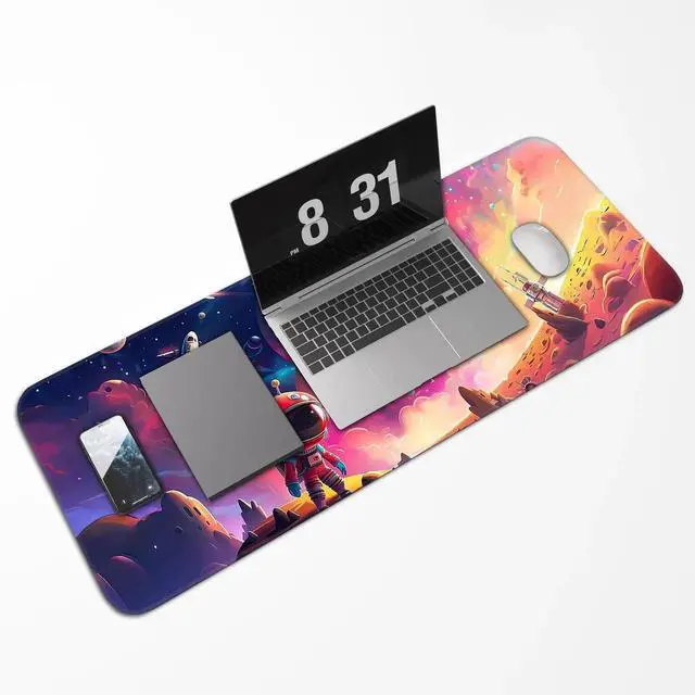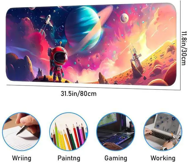 SizeOur oversized mouse pad is designed for comfort and efficiency. Measuring 31.5x11.8 inches, it provides ample space to hold your mouse, keyboard, and other desktop essentials.