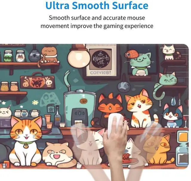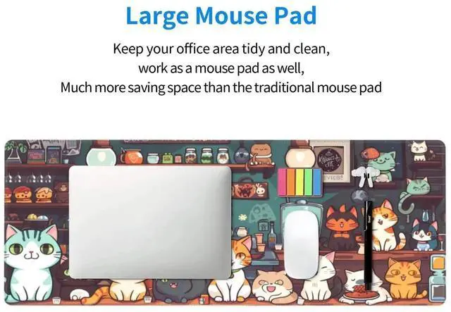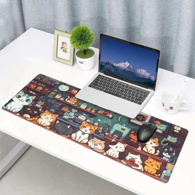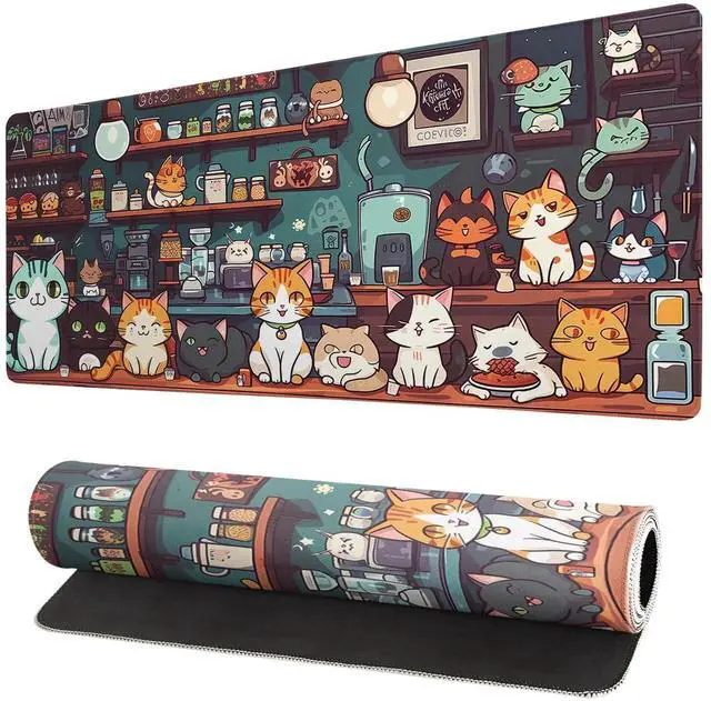 JVFYI Gaming Mouse Pad Desk Pad,Extended Big Mouse Pad,31.5x11.8 Inch Long Computer Keyboard Mouse Mat Mousepad with 3mm Non-Slip Base and Stitched Edge for Gaming and Office (cat)