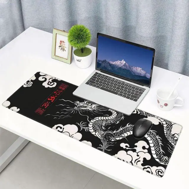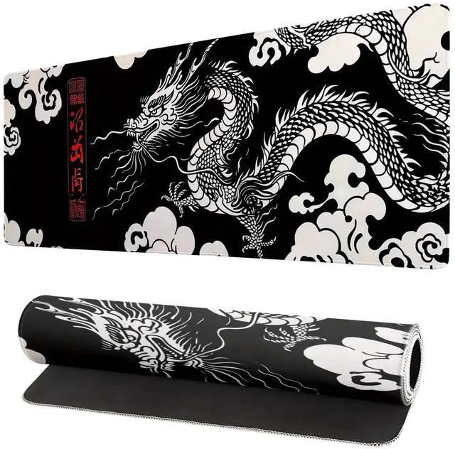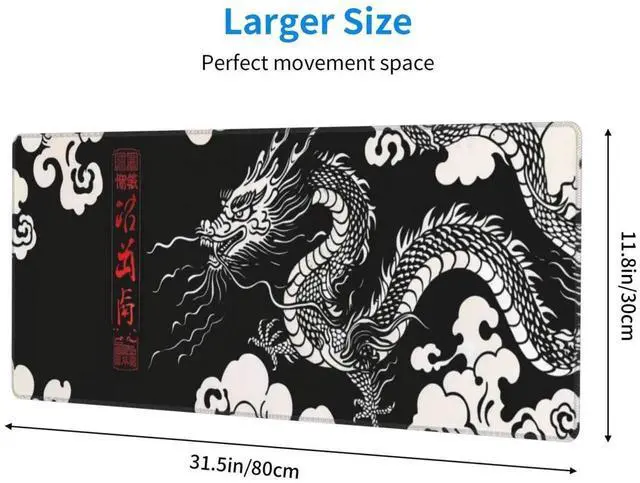 JVFYI Gaming Mouse Pad Desk Pad,Extended Big Mouse Pad,31.5x11.8 Inch Long Computer Keyboard Mouse Mat Mousepad with 3mm Non-Slip Base and Stitched Edge for Gaming and Office (Loong)
