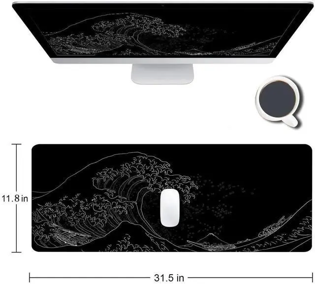 JVFYI Gaming Mouse Pad, Large Mouse Pads for Desk, Non-Slip Rubber Base Mousepad, Keyboard Mouse Mat, Desk Pad with Stitched Edges, 31.5x11.8inch, The Great Wave Off Kanagawa