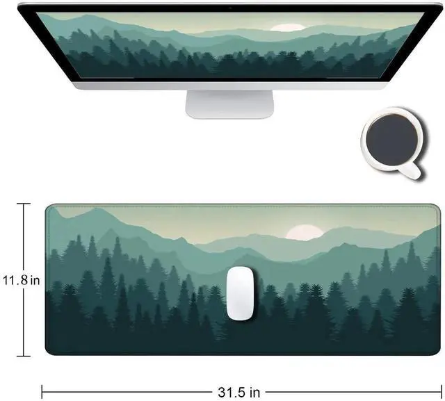 JVFYI Mouse Pad Gaming, Large Mouse Pads for Desk, Keyboard Mouse Mat Desk Pad, Non-Slip Rubber Base with Stitched Edges Mousepad, 31.5x11.8 inch Abstract Landscape Mountain