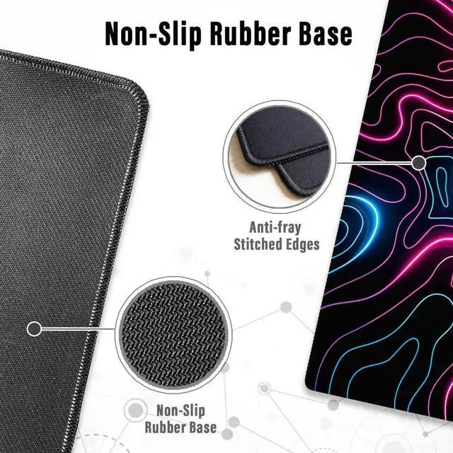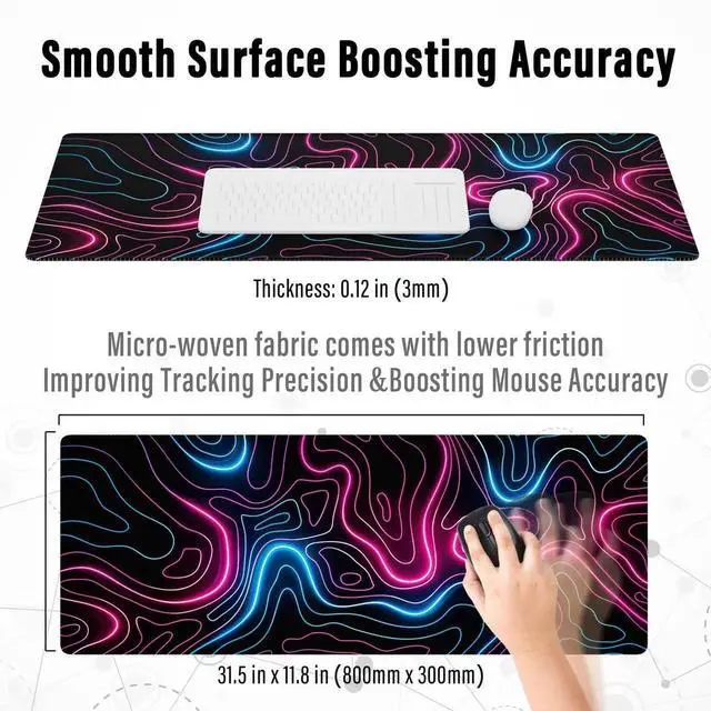 This large mousepad gaming is made of soft and dense rubber with non-slip texture on the back side; together, the texture and thickness keep the desk mouse pad always firmly in place.