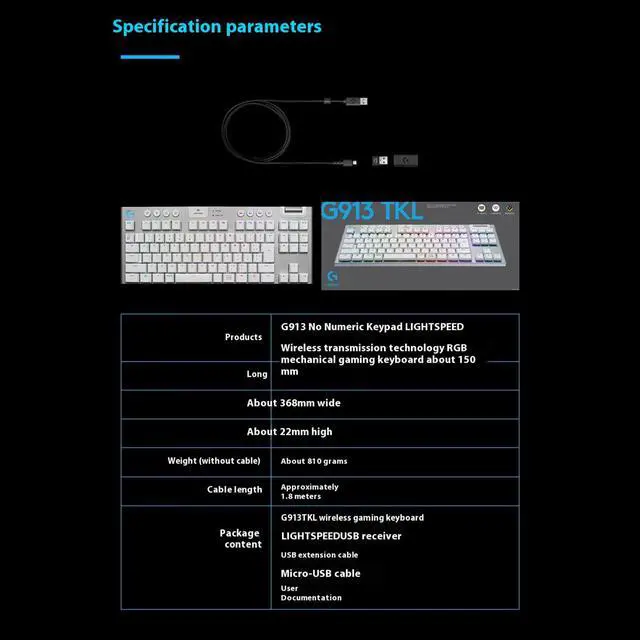 Logitech G913 TKL Wireless Keyboard LIGHTSPEED Wireless RGB Mechanical Gaming Keyboard