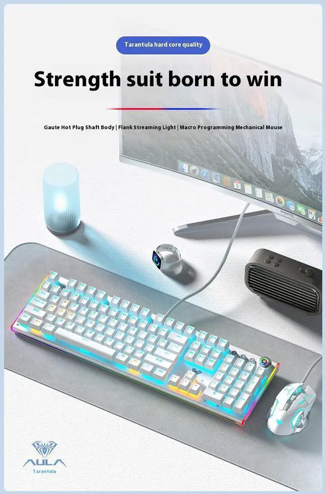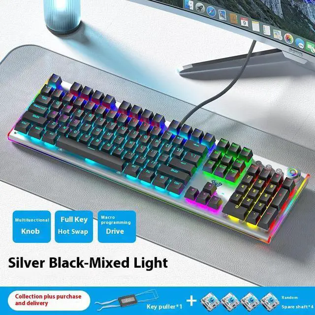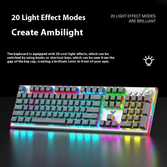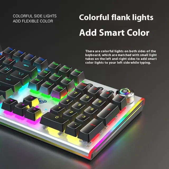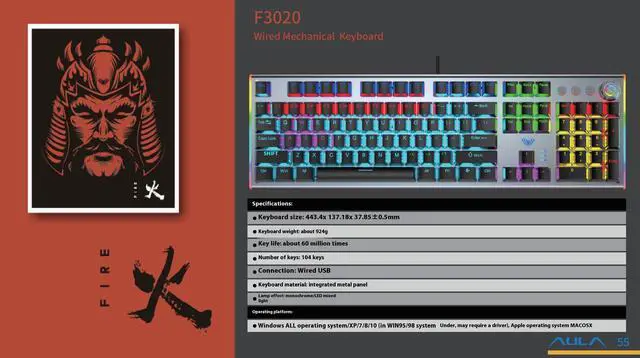 . Keyboard size: 443.4 x 137.18 x 37.85 ± 0.5 mm Keyboard weight: about 924g Key life: about 60 million times Number of keys: 104 Connection: Wired USB Keyboard material: - body moulding metal panel Lighting: Monochrome/LED mixed light