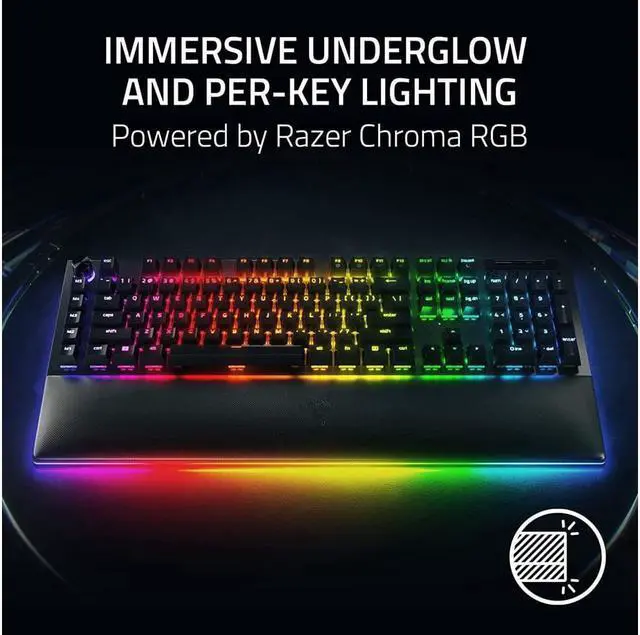 IMMERSIVE UNDERGLOW & PER-KEY LIGHTING Featuring per-key lighting and a striking 3-side underglow when paired with the wrist rest, sync the keyboard with your battlestation and enjoy greater immersion when gaming