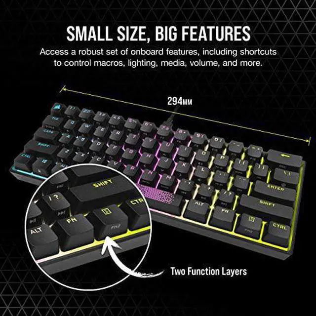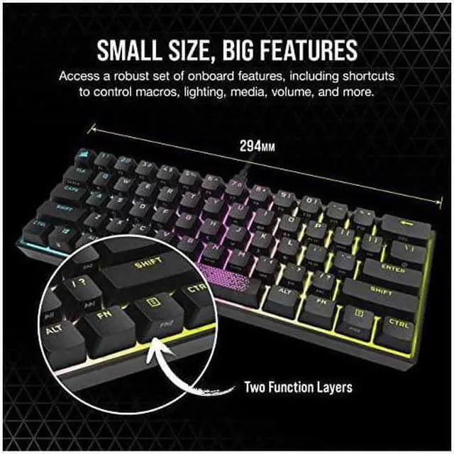 Small Size, Big Features: The K65 RGB MINI delivers big features compressed into a 60% form-factor to easily fit into even the tightest spaces for comfortable gaming.