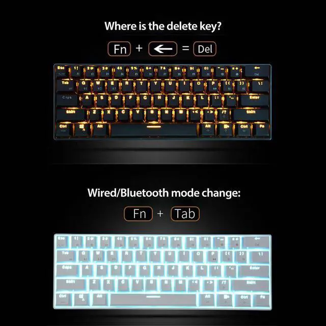 Wired/Bluetooth mode change: Click FN+Tab to change into wired or bluetooth mood;