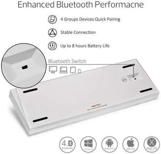 • PROLONGED BLUETOOTH USAGE : Anne pro 2 utilizes 1900mah battery which offers up to 8 hours wireless usage under regular circumstances, which means a few days life cycle on a single charge. There is also built-in on/off switch to conserve battery power during transport or when not used. Can be used wireless with Bluetooth LE 4.0 (Windows 8/10? Mac? OS Linux Android 4.4 and above, IOS 7.0 and above)