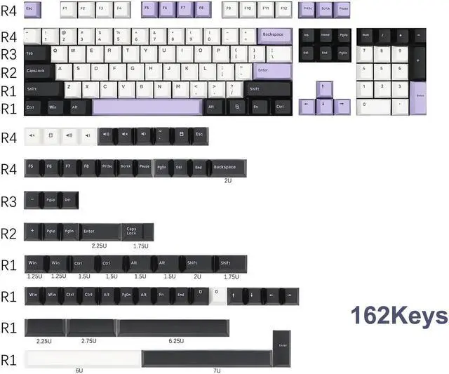 PBT Dye Sublimation : With high-quality PBT keycaps and an anti-grease coating, these 162-key keycaps provide top-notch durability. Advanced five-sided sublimation technology makes the pattern not fade.