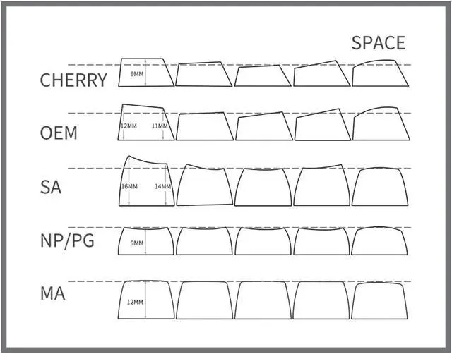 Cherry Profile: This set of keycaps is a cherry height . It is ergonomically designed and can bring you a comfortable typing experience. It is a good choice for your DIY keycaps.