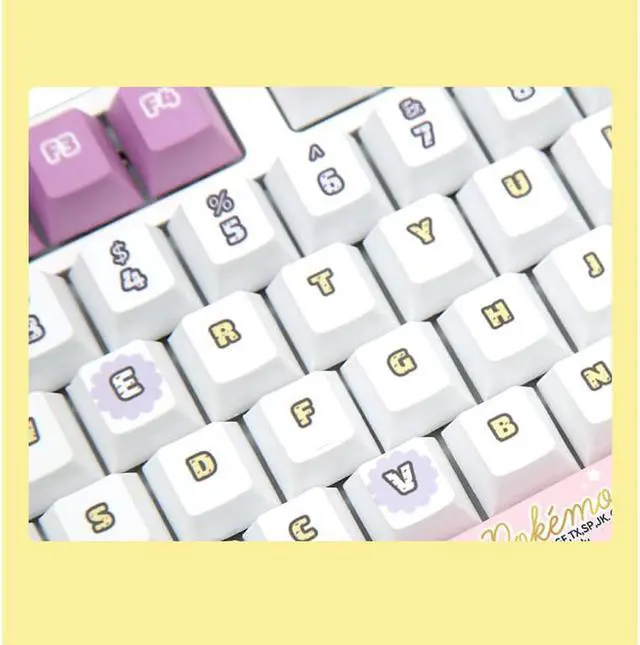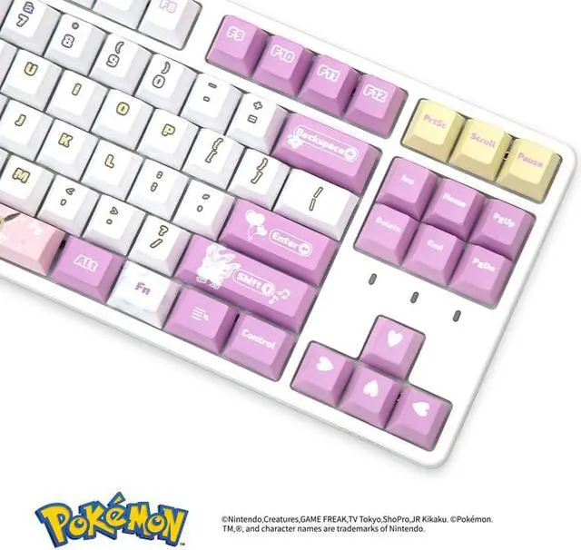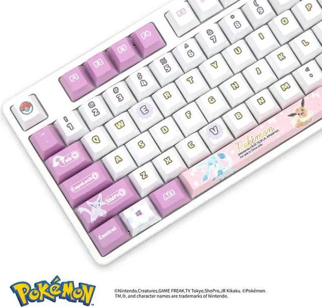 IROK FE87 pokemon Eevee version, PBT keycap, no light,87 keys Type-C wired Mechanical keyboard, Pink / White,Blue Mechanical switch