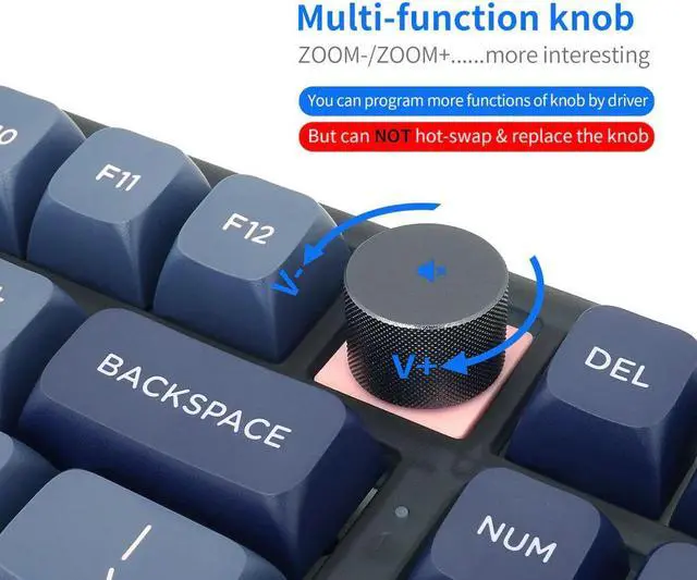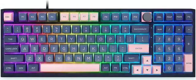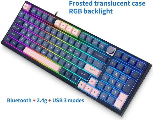 GK980 RGB Dye-Sub PBT Mechanical 98 Keys Gaming Blue Keyboard, Support Windows and Mac, Knob Button - Wired/2.4G Wireless/Bluetooth - Rose Swithes