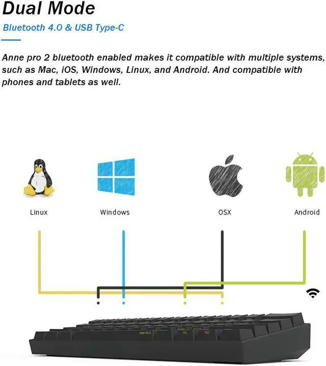 1. Dual Mode Connection Bluetooth 4.0 and Type-C USB-C dual mode connection, makes it widely compatible with multiple systems, for Mac, iOS, Windows 8/10, Linux, and Android. Bluetooth mode does not support Win 7.