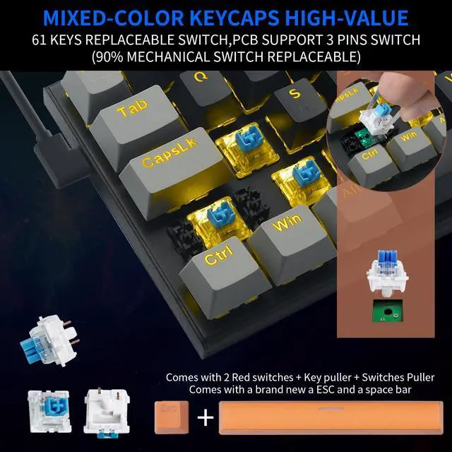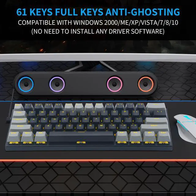 Compact&Ergonomic DesignWith 61 keys, it is smaller to save space on your desk and more portable. The stepped keycap makes it sleek to fit your hands easily to prevent fatigue.Provides Windows Key lock for gaming.