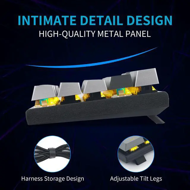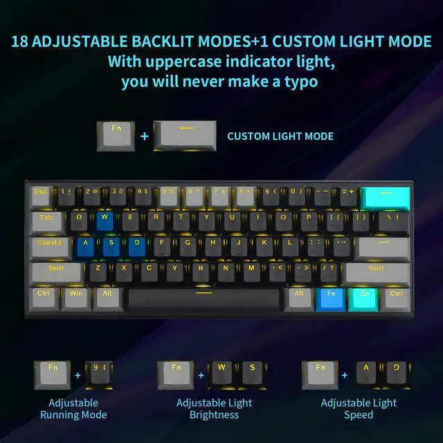 Custom mechanical blue switches designed for longevity, responsiveness and durability. Offer the best tactile and loudly clicky experience for typing or gaming. And you can replace the switches by yourself if need Windows LockingProvides Windows Key locking with FN+Win Key in order to avoid buttom Win key by accident when you gaming.