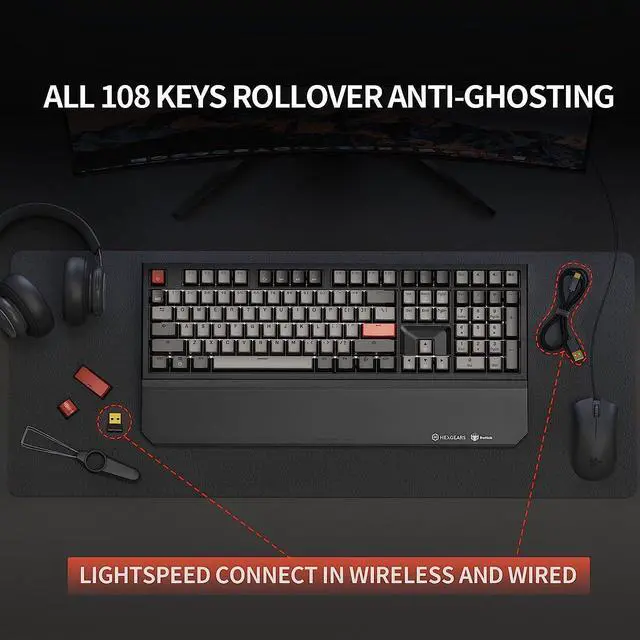 Wireless Mechanical Keyboard with Kaihl Box Red Switch, Dark Knight Computer Keyboard for Gaming, Typing, Ergonomic 108-key Typewriter Keyboard with Wrist Rest