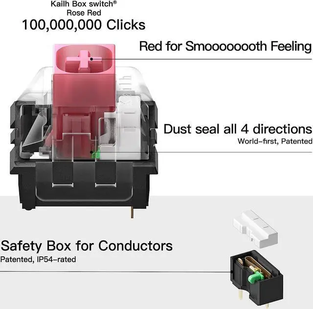 Durable: Double-shot PBT keycap insures wearability and anti oily. Premium Kailh BOX Switch endures 100million keystrokes.