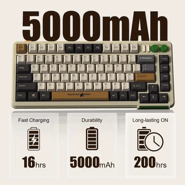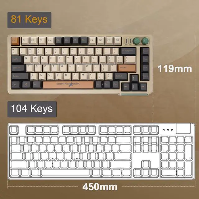 Wireless mechanical keyboard measures 13.35 * 5.81 * 1.53 inch, compare with normal TKL keyboard, it saved 20% of desktop space, strikes the perfect balance between functionality and portability, ideal for office and home use.