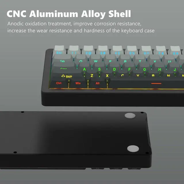 The aluminum alloy shell of keyboard is anodized to improve corrosion resistance, increase wear resistance and hardness, and protect the metal surface. These characteristics will give the keyboard a thick, solid and textured appearance. 75% keyboard adopt the traditional PBT keycap with cherry outline and are designed according to ergonomics to prevent fatigue.