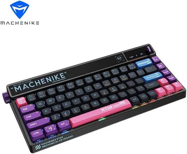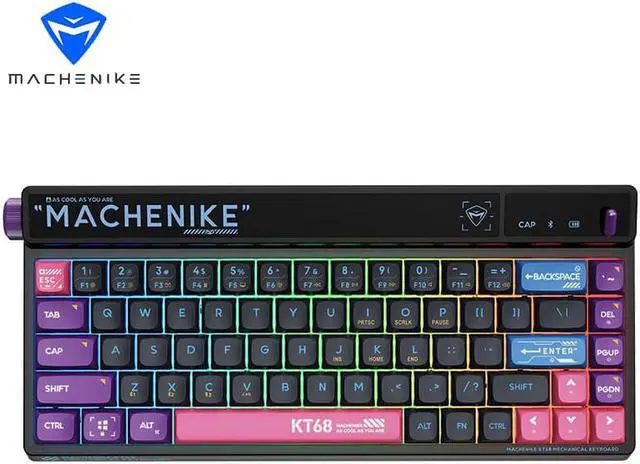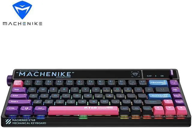 MACHENIKE KT68 Bluetooth Keyboard 68 Key Tri-mode Customized Retro 2.4G Wireless 3 Models Hot Swap RGB Gaming Mechanical Keyboard - Red Switch Back to the Future Black