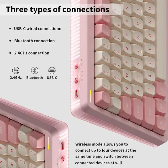 New upgradeFor better lights we decided upon a semi-transparent bottom case, constructed with double-shot moulding, the entire surface of the case can serve as a expansion of the Halo band to transmit RGB lights. And for better sound and feel, the gasket mount style has to replace the top mount used in the first generation.