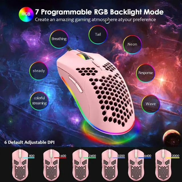 3, Light effects: 6 Kind RGB backlit effect (Mouse backlight color Can be adjusted)