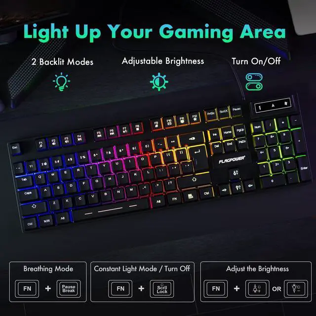 FLAGPOWER Professional USB backlit gaming keyboard for gaming and working. Backlighting design is perfectly for any working/gaming place especially at night time